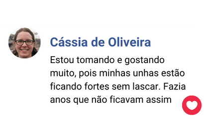 "O produto é maravilhoso!! A rotina puxada não me permite cuidar da minha alimentação da melhor maneira, eu sinto que o suplemento tem trazido de volta a vitalidade que eu perdi no meio dessa correria. Minhas unhas nunca mais quebraram e meu cabelo está com um brilho que nunca teve antes" -via WhatsApp