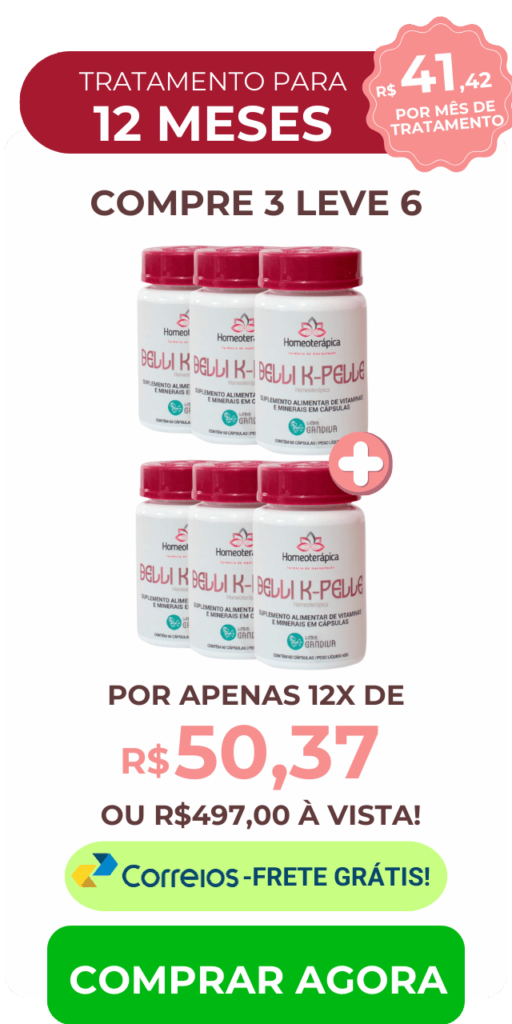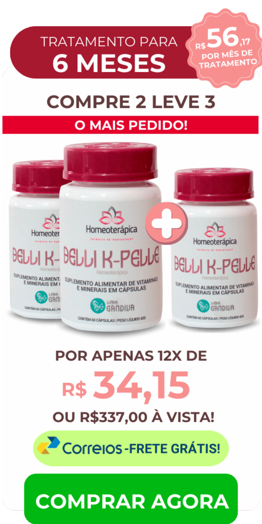 Belli K-Pelle contém Biotina e Zinco, que fortalecem os folículos capilares, reduzindo a queda e promovendo o crescimento saudável dos fios.